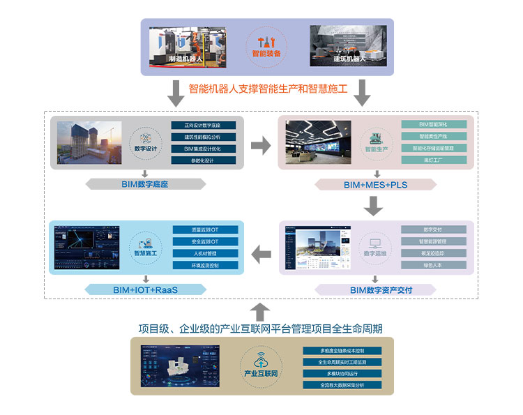 从“数据驱动”“以人为本”“绿色低碳”三大场景切入以“数字设计、智能生产、智慧施工、智能装备、产业互联网及智慧运维”六大维度为着力点,将51项技术在试点项目中进行了深度应用,针对性的解决参数化设计、构件生产信息追溯、施工作业“危、繁、脏、重”、项目业财一体化管理、数字孪生建筑信息模型交付等行业痛点。